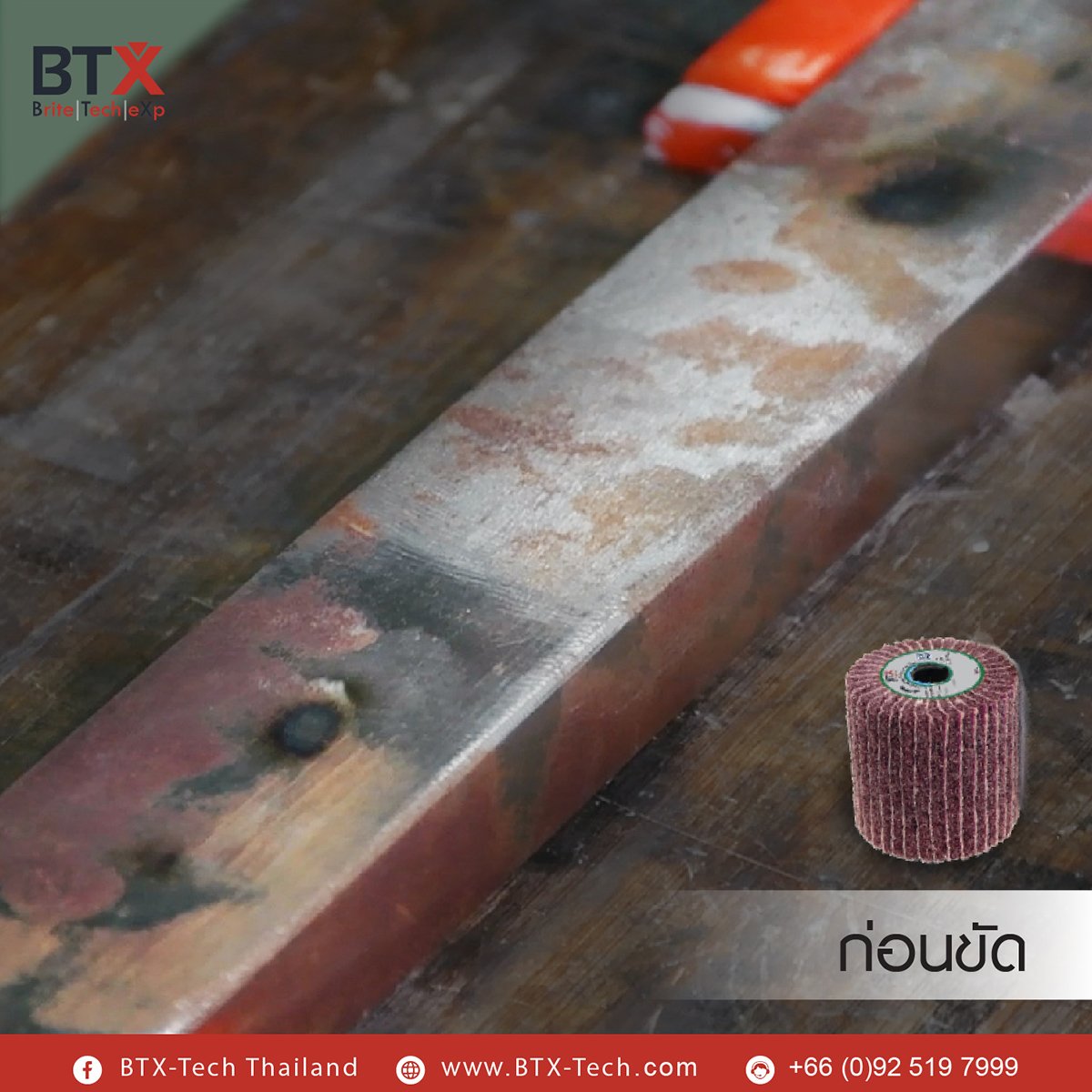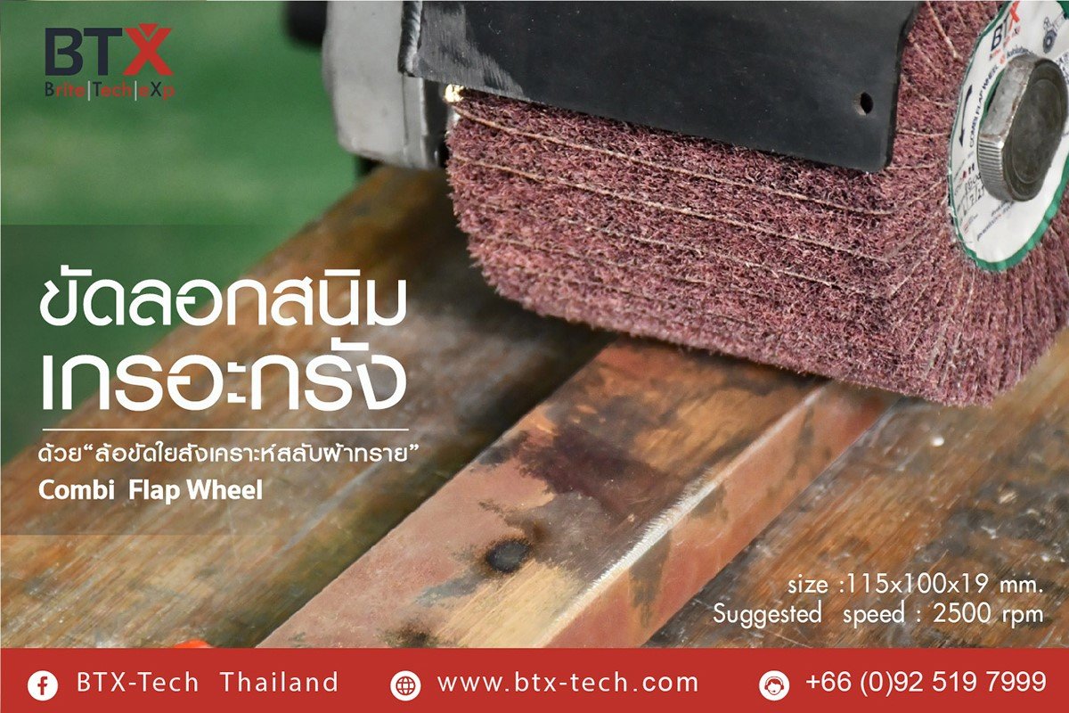 ขัดลอกสนิมที่เกรอะกรัง ด้วย “ล้อขัดใยสังเคราะห์สลับผ้าทราย” หรือที่สายช่างเรียกกันว่า ล้อ Combi นั่นเองค่ะ