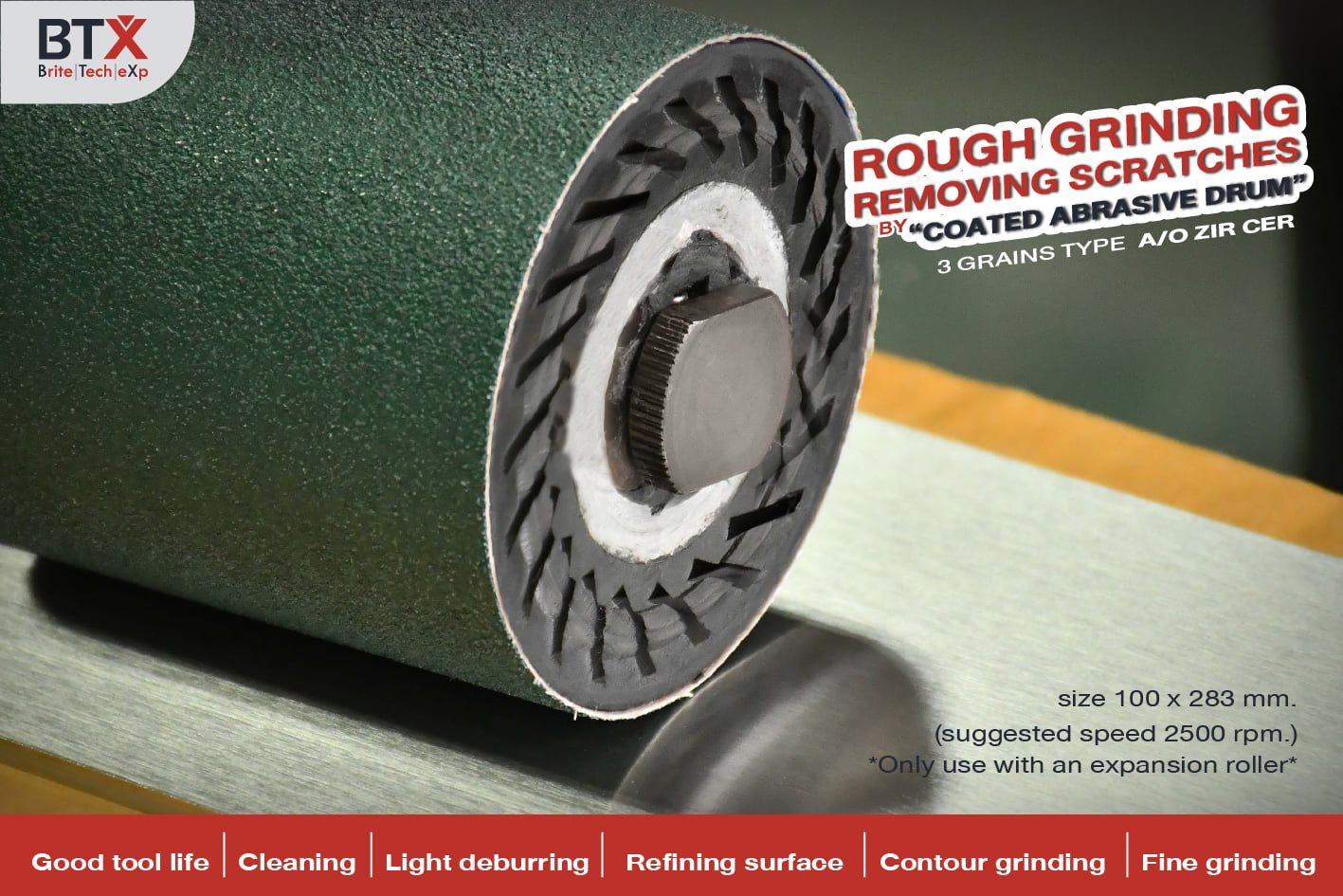 The abrasive band drums to use in combination with a soft rubber drum for use on conditioning machines For rough grinding,regular aluminium oxide has good tool life when used on structural steel.
